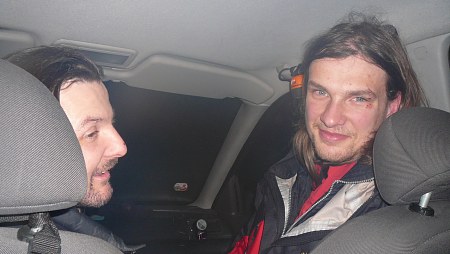 na sestupu z Nálevky Po večeři se přesouváme do auta, kde začíná večírek s rakouským 80-ti procentním rumem. Ten dostává nečekané obrátky, až na ty konce. Držím se zpátky, o to víc toho zbývá pro kluky. Je veselo a řeší se kde co, padají moudra, lidová slovesnost by s obohatila. Jdem spát, začíná sněžit
