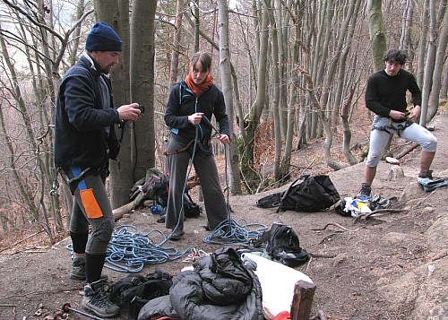 Na ledech jsme nezamrzliŘíká se "Březen, za kamna vlezem". Ale když jsme neumrzli na ledech, tak přece v březnu nebudeme sedět za kamnama. Sobota, 20. března, první jarní den, no jarně to moc nevypadá, Čerťáky padají, tož aspoň se Starým zajedem na půl dne na Štramberk. Arboretum zavřené, no zbývá Vaňák. V rychlé sledu přeběhnout 9 cest, bo je vážně zima a fučí, však na okolních kopcích je ještě sníh a rychle domů za holkama na oběd. No první popolezení máme za sebou, tak je třeba další sobotu zase vyjet.