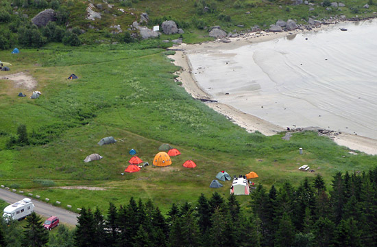 Norsko - Lofoty18. 6. - 2. 7. 2011Leoš V roce 2000 jsem k jednomu z pokusů o severní stěnu Eigeru přizval šumperského horolezce Kryštofa Kolembuse. On se jmenuje Milan, ale kvůli příjmení mu nikdo, včetně jeho ženy, neřekne jinak, než … Kryštofe. Od té doby spolu udržujeme kontakt a každý rok od něho slýchávám … pojďme něco vylézt, ale ve skále. To se mu to řekne, když mám už dost roků stabilního spolulezce a teď už dokonce uzákoněného. Nicméně letos se to vyvrbilo tak, že Karla musí vyčerpat celou dovolenou a další volno na přípravu svého dalšího profesního růstu a tak jsem přivítal nabídku jet se šumperákama do Norska na Lofoty. Byl z toho lezecko - cestovatelský podnik s nejistým výsledkem, vzhledem ke klimatu v severním Norsku, kde prší 300 dní v roce. Rychle jsem oprašoval zeměpisné znalosti a zjišťoval, kam že se to cpeme. Základní informace a lezecký průvodce byly od Romana Kamlera (majitel Tilaku) a zbytek byl v rukou božích. ![]() Nebudu to rozepisovat jako román, ale jen heslovitě : ÚčastníciŠumperk, Kolembusovi s dcerou, já, Břetislav Zemene, Tomáš Macháček - Mech (lezec + rybář), celkem 6 lidí DopravaVW Transporter, 46 hod. Šumperk - Kalle. Trasa - Šumperk, Králíky, Klodzko, Wroclaw, Berlín, Sassnitz - trajekt - Trelleborg, Malmő, Stockholm, Umea, Lulea, Gällivare, Kiruna, Narvik, Svolvaer, Kalle - jedním směrem cca 3 500 km ![]() DestinaceLofoty jsou tvořeny 3 ostrovy (od S k J Austvág, Vestvág, Moskenes). Neplacené tábořiště v Kalle se nachází cca 15 km jižně od Svolvaeru na ostrově Austvág. Na tábořišti jsou udržované 2 latríny a kohoutek s pitnou vodou, vše na břehu mořské zátoky. Každý druhý den přijeli popeláři, naložili odpad a doplnili toaletní papír do latrín - inu jiný kraj, jiný mrav …. Pobytprvní týden mizerné počasí na naše poměry, mrholení, déšť, vítr, cca 80C, pak lepší. 25.6. - výlet do A, poslední vesnice na konci Lofot na J (Moskenes). Rybaření každý den jako součást stravy - večeře, spousta komárů. ![]() LezeníHenningsvaer (městečko s lezeckou hospodou a školou), Pillaren + Presten dva významné kopce. 24.6. - cesta "Celebrian" na Pillaren (s Kryštofem), 6-Norské, 7- UIAA, 10 pálených délek, spáry a kouty, vše na svojem jištění, vršek v mrholení a zima, obtížný sestup, 1300 - 2015 hod.vrchol, do 100 sestup k autu.Výhodou je polární den - nonstop světlo. Hodně poctivý podnik. 26.6. - cesta "Bare blobaer" na Pillaren, 5- Norské, 6- UIAA, spáry v plotnách (s Mechem), 4 délky na vlastním, poslední 2štandy na nýtech (výjimka), nádhera za pěkného počasí, koupačka ve sladkém plese. 29.6. - pracovní název "Hajzlová spára" ve stěně nad táborovými latrínami, 2 délky na na svojem jištění, 6 UIAA, spojili jsme to do 1 délky - s Mechem a Břetíkem, nahoře stabilní slaňák na hexech. Celkově lezení jen pro otrlé a ne pro nezkušené. Jsou to vážné hory, lezecká filozofie je - po mně čistá stěna, t.zn.anglický tradicionalizmus. Místní žula má vynikající tření, které funguje do značné míry i za vlhka, celkově to je skvělý matroš. ![]() Leoš |