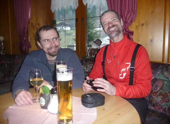 Výbor v Zillertalu18. - 20.2. 2011Martin, Ivan, Roman Nevím, jestli to tak má každý, nebo jen já, ale domluvy akcí jsou jako přes kopírák. Detaily nebudu zatěžovat, ve čtvrtek je jasno, že jedeme jen tři, dle názvu určitě víte kteří. Ostatní "něco" měli, většinou výmluvy. Letošní zima nepřeje zimním radovánkám a pokud ledy někde mají být, tak někde vysoko, proto volíme údolí Zillergrundu v patnáctistech metrech. Do cíle nás poveze Ivanův po generálce úplně nový motor jeho Mazdy. Musí ho šetřit a tak moc neženeme. Jo, pokud nevíte, tak cestou na Sant Pölten (po S33) už je nový most přes Dunaj a tak se nemusí přes Krems, a hezky to odsejpá. V cíli na parkovišti jsme po půlnoci, rozložíme v kufru bydlení a hajdy na kutě. ![]() Almstüberlfall - žádný sníh a zbytky ledu Ráno se nikam neženeme, v takových podmínkách se s rakušáky určitě pod nástupy tlačit nebudeme. Po sněhu ani památky, o to víc zbytky ledů ve stěnách razí. Je vidět, že si vysoké teploty posledních čtrnácti dnů do nich pořádně kously. Projedeme údolím tam a zpět a vybíráme si 180 m dlouhý Almstüberlfall WI 4, původně plánovaný "Colombův led" Klaushoffall má nahoře zlověstně visící rampouch, vypadající jako gilotina a při teplotě 5 °C nechceme pokoušet osud. ![]() Druhá délka - Ivan Nástup v lese bez sněhu nic moc, převlíkání v blátě taky. Ale pak už to šlo. Střídáme se s Ivanem. Druhý štand je na skále vpravo, dost daleko od zbytků ledu a tak jsme při lezení k němu a od něj špinaví jak prasata. Každému z nás se párkrát podaří zatnout zbraň přímo do skály, což se neobejde bez patřičného komentáře. Na závěr ještě třešinka, trocha kolmého a jsme nahoře. Tady se slzou v oku prohlížíme hroty cepínů. Ještěže jsem vzal ten pilník. ![]() přijeli jsme lézt ledy a zatím tu okopávám zahrádku Slanění mělo být rutinou, ale nestalo se tak. Dojedu k prvnímu štandu na dvou skobách, ve kterém jsme viseli všichni 3 cestou nahoru. Aby na mě Martin nic neházel, přitáhnu se za smyčky, abych se schoval a najednou dostávám vrata, jedna skoba mi zůstala v ruce. Není mi nejlíp, kdo ví, jak na tom je ta druhá. Opatrně slezu dolů, vrtám dva šrouby a můžu si oddychnout. Při zatloukání skob se hýbe celý blok, tak jak dolů? Háček na hodiny zůstal na nástupu v mém batohu. Je mu tam dobře. Ale poradíme si i bez něj. Martin s Ivanem je testnou a já jako poslední levituji dolů. ![]() na chatě - Ivan zkouší detekci úsměvu na mém foťáku, kterou nemám Původní plán jít ještě jeden krátký soplík Ivan ruší s tím, že dneska to je na průser a jdem na pivo. Klaushof je zvenku krásná, zevnitř se shodujeme, kýčovitá chata. Radši tam nechoďte. Na parkovišti pojíme, co kdo má z domu, ani nevaříme. Uzený bok, klobásky, vysočina, buchta. Následuje zsloužený odpočinek v kufru auta, ale dvě piva a rum je málo, Martin nedostál své pověsti a očekáváním a nic nevzal. Debata je tudíž korektní a věcná. Jsem nějaký utahaný a tak ani nevím, kdy upadám do komatu. Neděle o čtvrt na osm, vstávat, je výrazně chladněji, už u auta není bláto, takže těsně pod nulou. Máme prázdné auto, ale ti dva apači si nevzali vařič, prý ho určitě budu mít já. Mají recht. Tak jim teď musím vařit čaj. Plánovaný led se opět nekoná, slanění v hodinách v té glazurce pod níž teče voda, nás odrazuje. Jdeme teda údolím Sundergrundu nahoru zkusit Gaulgully WI 4-. ![]() krásný žlábek - Gaulgully Zespoda to vypadá na úzký ledík na jednu délku, ale průvodčík říká 3. Když do toho vleze Ivan, je v tom nějaký malý, tak to bude asi fakt větší. Chce si to užít tak to valí přímo nahoru plných 60 m a štanduje na dost blbém místě. O mě nic, já půjdu první, ale budu na ně házet. Na štandu mu kecáme do jištění kyblíkem v sedáku. Trochu se ošívá. Je to kyblík od Mammutu, ten přece nemůže být špatný. Je. Ale nechá se přesvědčit. Tak příště uvidíme. Druhá plná délka a jsem u otrhaného křaku kosovky, kde je smyčka. Štand. ![]() poslední metry Z Ivana se stává s novým foťákem fotograf a hlavně režisér a kameraman, takže se můžeme těšit na něco ve stylu Asgard Jamming, jen bez flauty a mandolíny. Střihu se ujme Martin. Termín uvedení do kin či na DVD není dosud znám. ![]() slanění z hodin Dnes neponecháváme nic náhodě, ani háček u nástupu, a tak během chvilky přidávám ke stávajícím hodinám druhé, pro sichr a klid duše Martina. Nemá s nima zkušenosti, tak se na ně dívá s despektem. To přejde. Jsou dvě, jsme dole a přichází rakušák, někde v půlce je jeho drahá polovička, vypadá s dredama jak chlap. Tak si říkáme, že jestli jí půjde to lezení jako nástup, tak zatmí. ![]() Na chatě In der Au, mimochodem mnohem hezčí než včerejší, si dáváme pivko, bohužel lahvové, a víno a po třetí hodině vyrážíme k domovu. GPS nás vede, jen Ivan ji často ignoruje a zkouší své varianty. U nás je kosa jak sviňa, mínus deset. Na to nejsme z rakouských ledů zvyklí. Tak tolik z výjezdního zasedání výboru. Hore zdar Roman |